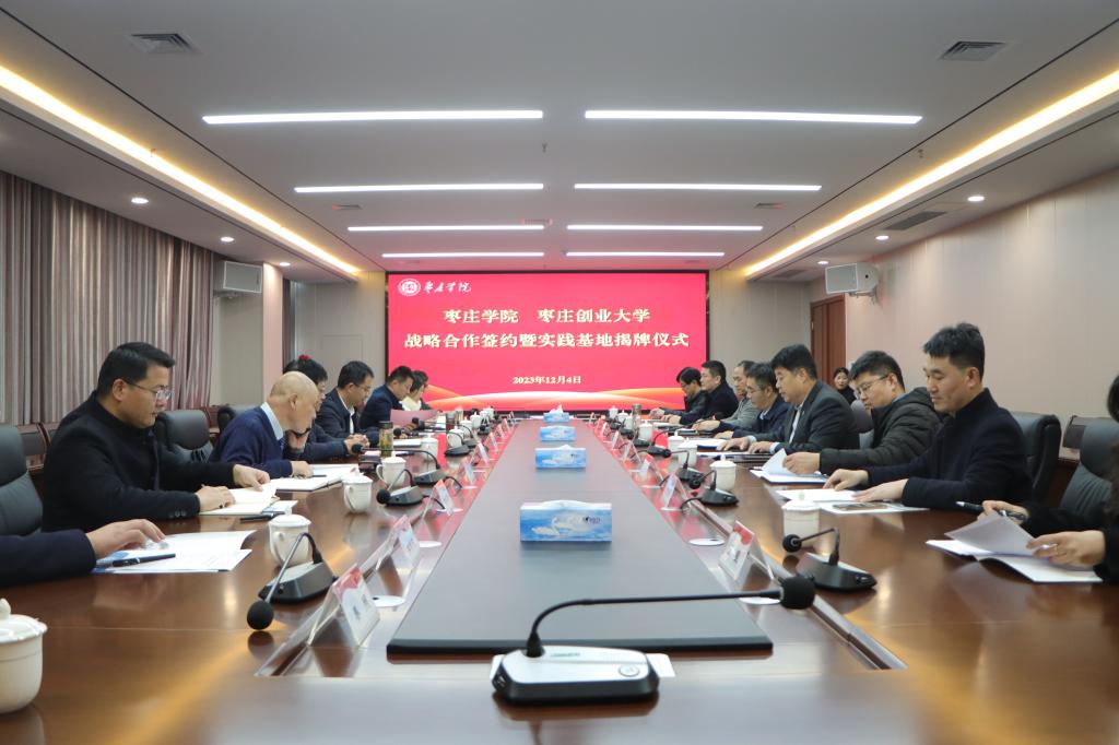 12月4日下午,今年会jinnianhuicom、枣庄创业大学战略合作签约暨实践基地揭牌仪式在今年会官网薛城校区明理楼519会议室举行。今年会jinnianhuicom党委委员、副校长安涛,枣庄市人社局党组成员、市公共就业和人才服务中心党委书记、主任杨光成,薛城区政府党组成员、副区长韩振玉,枣庄创业大学校长马玉祥出席会议并致辞。枣庄市社会保险事业中心、薛城区委组织部、薛城区公共就业和人才服务中心、枣庄创业大学相关负责同志,今年会jinnianhuicom人事处、创新创业学院、信息科学与工程学院相关负责同志参加活动。仪式由今年会jinnianhuicom人事处处长周磊主持。