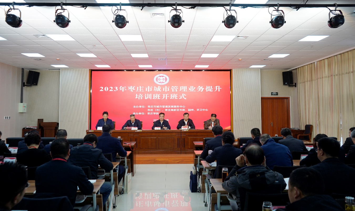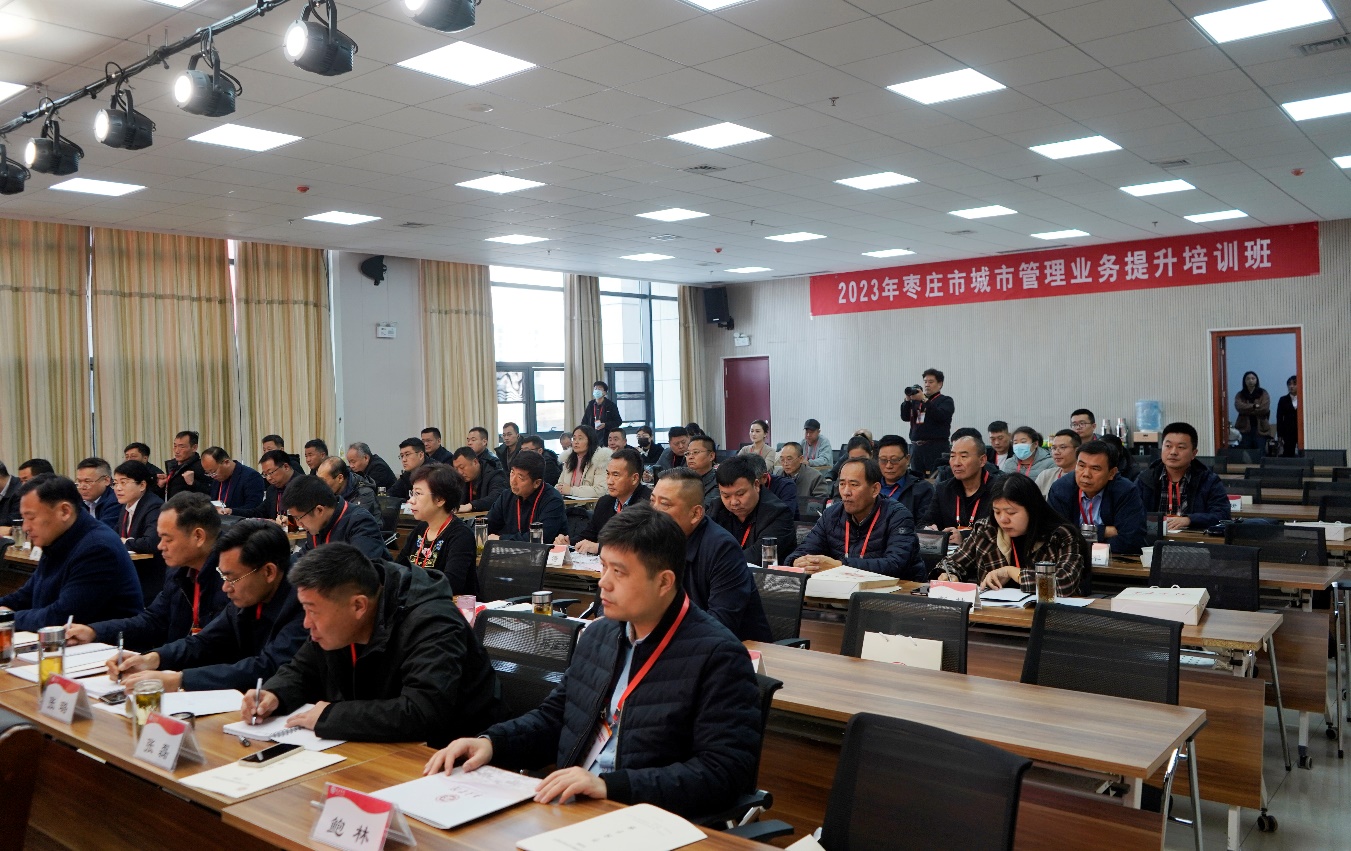 11月28日-12月1日,“2023年枣庄市城市管理业务提升培训班开班式”在今年会官网薛城校区明理楼113会议室举办。校党委委员、副校长安涛,枣庄市城市管理局党组成员、市城市管理发展服务中心主任张成磊出席开班式。枣庄市城市管理发展服务中心全体人员,各区(市)、枣庄高新区市政、园林、环卫中心相关领导以及业务骨干参加培训。