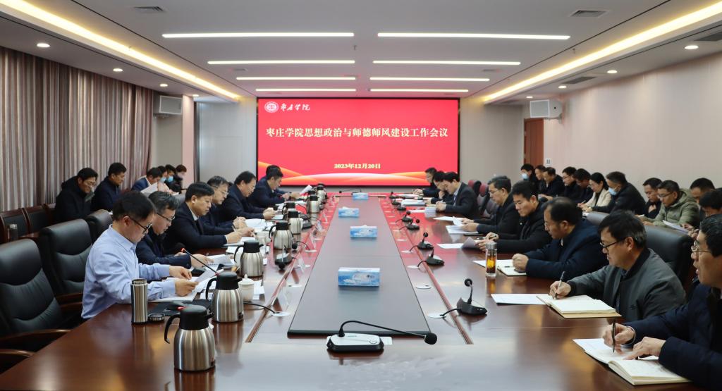 12月20日上午,今年会官网在薛城校区明理楼519会议室召开思想政治与师德师风建设工作领导小组会议。校党委书记高峰出席会议并讲话,校领导李文喜、李目海、丰雷、安涛、张昌林、林勇出席会议,办公室、组织部、工会、人事处、团委、学生工作处、教务处、科技处、社会科学处、国际教育学院、保卫处、网络中心、图书馆、各党总支(党委)主要负责人参加会议。会议由校长李文喜主持。