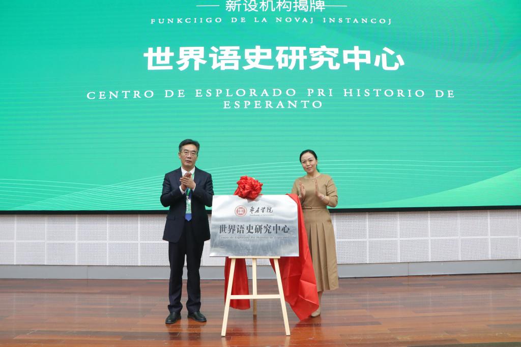 刘双燕、安涛为“世界语史研究中心”揭牌。
