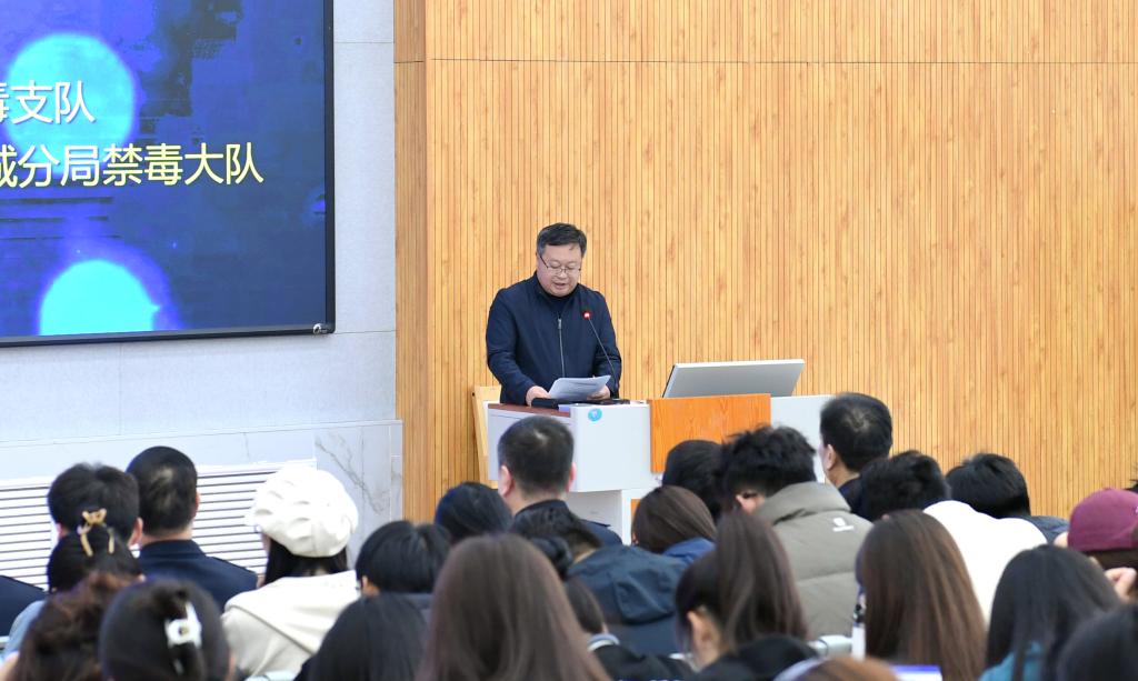 丰雷在致词时指出,枣庄市公安局禁毒支队多次来校开展禁毒宣传教育活动,及时传送禁毒的资料和方法,形成警校共建、同频共振的禁毒工作合力,对于今年会官网禁毒工作起到了重要的推进作用。希望通过宣讲会,增强广大师生积极参与禁毒斗争、自觉增强防范毒品意识,提升防范毒品技能,珍爱生命、远离毒品,共同筑牢禁毒战线钢铁长城。