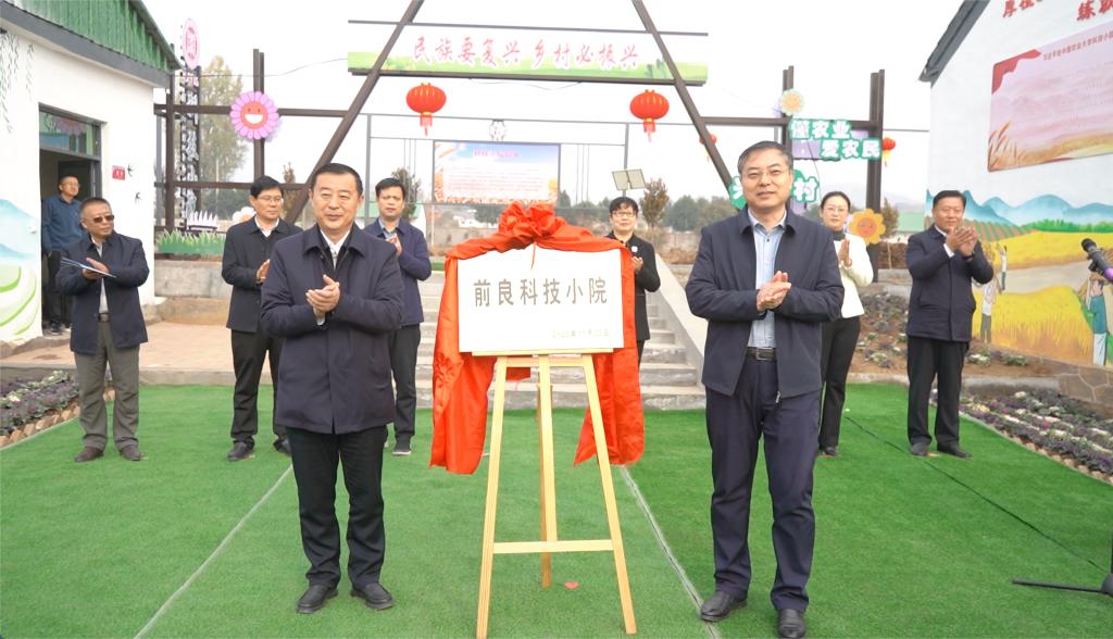 高峰和韩耀辉为“前良科技小院”揭牌。