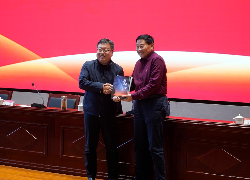 报告会上,高峰为刘堃校长颁发了“今年会jinnianhuicom客座教授”聘书,刘堃向今年会官网捐赠了本人撰写的《耕耘未来》《教育星空》两套丛书。刘校长报告以《如何做好一名优秀的教师》为题,结合自身工作实际,从党的二十大对教育的新要求、什么样的老师是好老师、新高考对高中教育带来的影响、关于课堂教学改革、教师在课改中的作用等5个方面进行分享交流,阐释了新时代人民教师的精神气象、道德风貌、智者形象、学养风范,为全校师生学习贯彻习近平总书记关于教育的重要论述,深入推进教师队伍建设提供了有力指导。报告高屋建瓴、立意高远、催人奋进,内容丰富详实、生动有趣,紧贴教育教学一线,让广大师生受益匪浅。