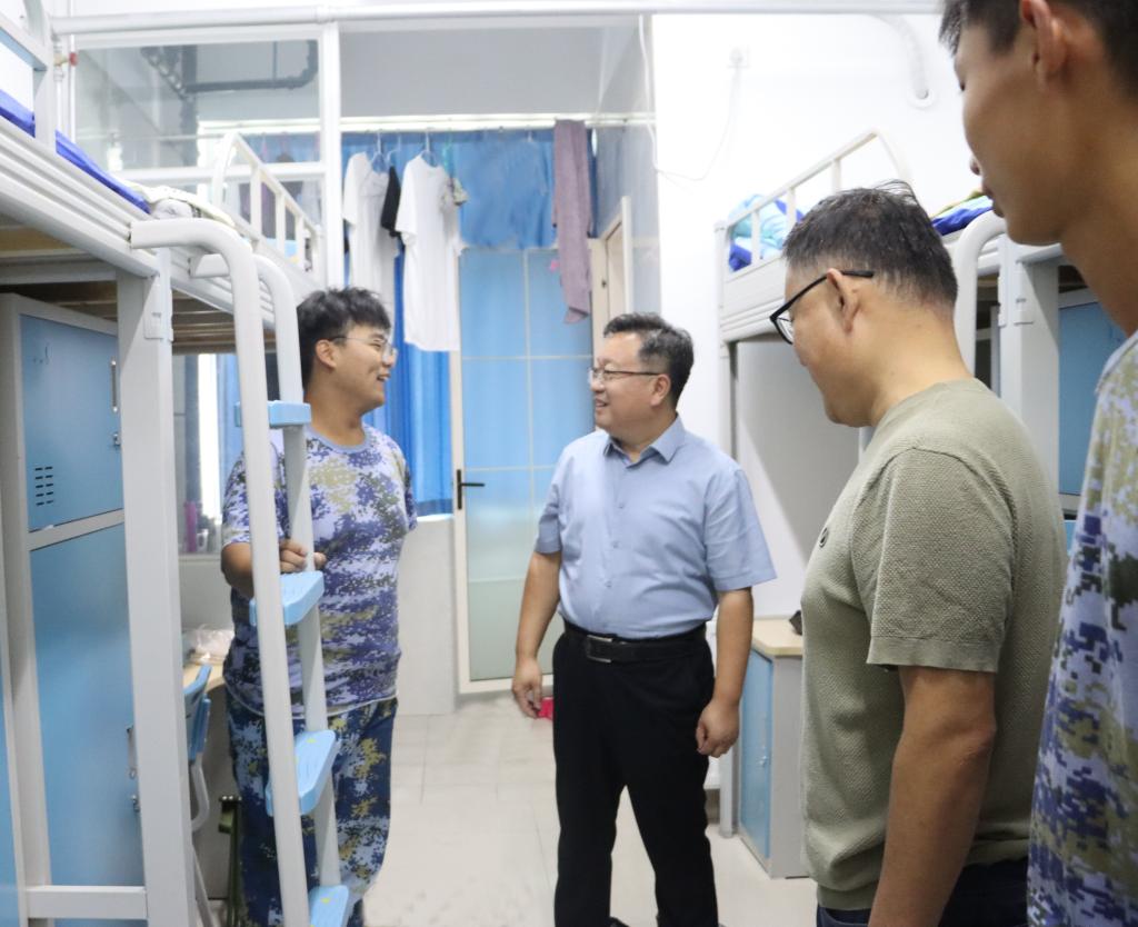 会后,丰雷带队检查了薛城校区学生公寓、快递中心、餐厅等场所,对检查中发现的问题提出整改意见。在学生餐厅和公寓,丰雷和学生亲切交谈,了解他们入校后的安全教育和日常生活情况,叮嘱学生在校及国庆假期外出应注意的安全事项。