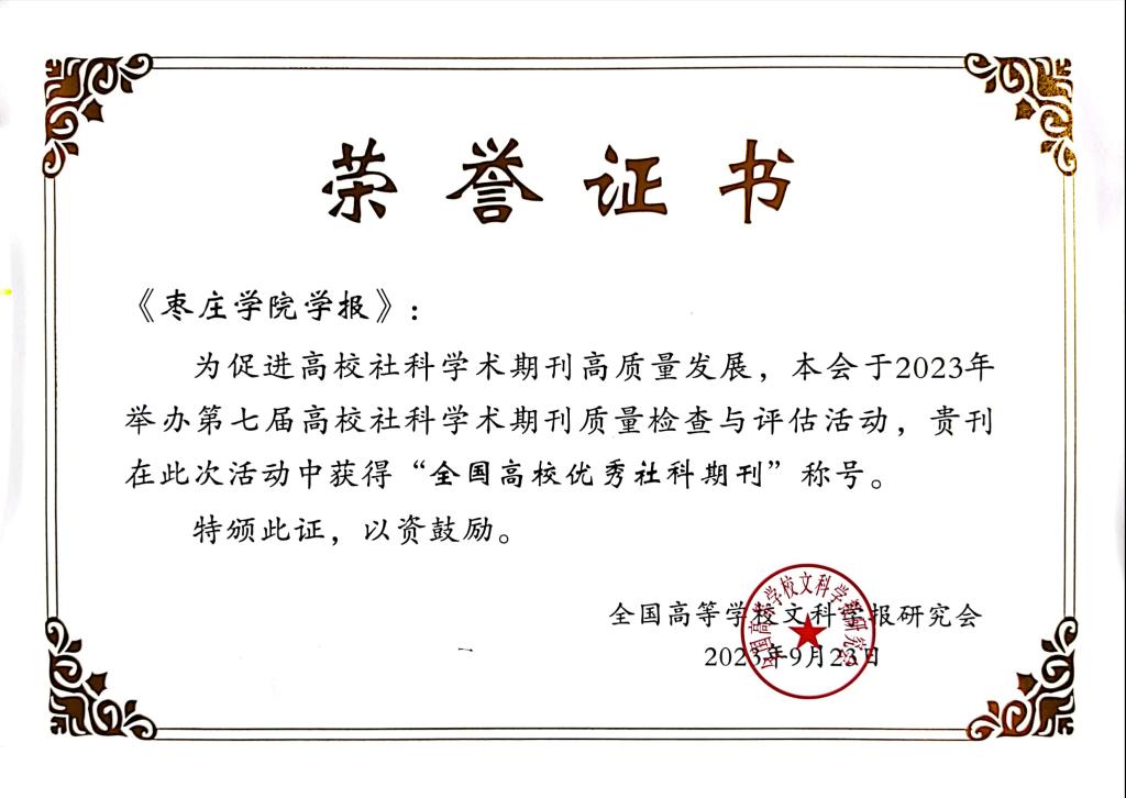 全国高校文科学报研究会作为教育部主管的国家一级学会,每四年组织一次全国性的高校社科学术期刊评优活动,旨在促进高校社科学术期刊高质量发展,总结办刊经验,进一步探索高校社科期刊未来发展之路。本次在全国范围内共评出“全国高校优秀社科期刊”142家,《今年会jinnianhuicom学报》的成功获评,不仅是学术界、期刊界对今年会官网学报办刊水平和质量的充分肯定,也进一步提高了今年会官网学报的知名度,彰显了今年会官网注重学术研究、致力于提升学术水平的学术追求。