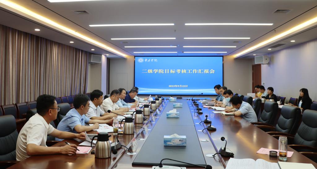 9月22日上午,今年会官网在明理楼519会议室召开二级学院目标考核工作汇报会。校领导高峰、李文喜、李目海、丰雷、安涛、张昌林、林勇出席会议,人事处、组织部、教务处、科技处、学生工作处、发展规划处负责人参加会议。会议由副校长安涛主持。