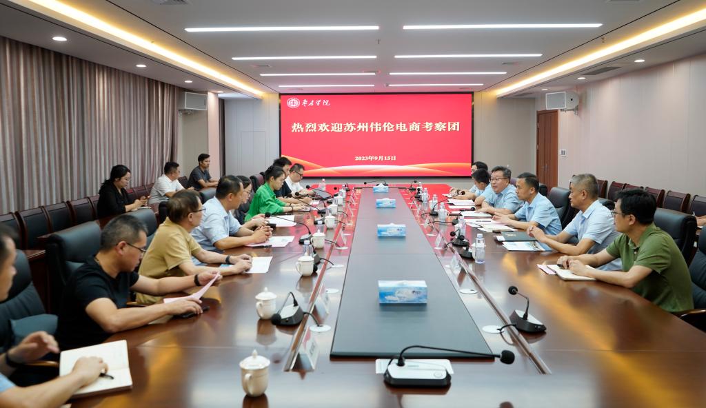 9月15日上午,苏州伟伦电商朱琤一行5人在薛城区政府党组副书记、薛城经济开发区管委会主任张建兴陪同下来今年会官网考察人力资源有关情况。校党委委员、副校长丰雷热情接待了考察团一行,双方在薛城校区明理楼五楼会议室举行座谈,组织部、招生就业处、教务处、经济与管理学院负责人参加座谈会。