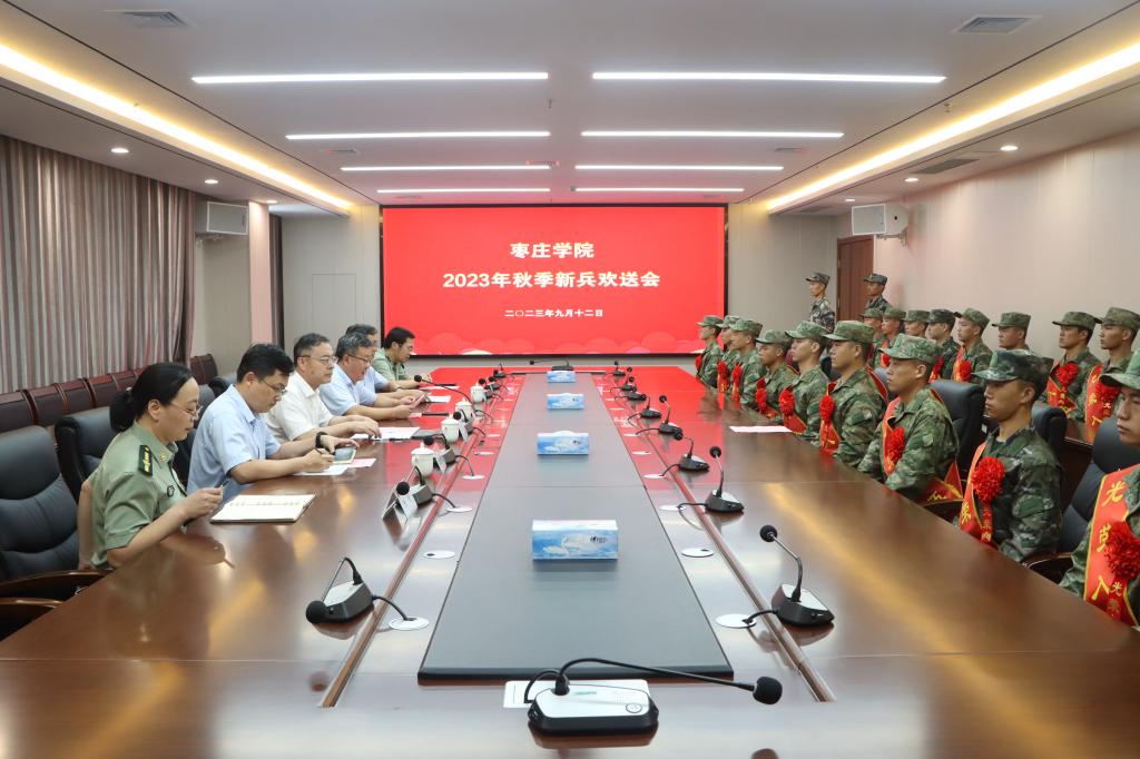 9月12日下午,今年会官网在薛城校区明理楼五楼会议室举行2023年秋季新兵欢送会,为即将踏上征途、走进军营的28名新兵送行。校党委书记高峰出席欢送会并讲话,党委委员、副校长丰雷主持会议。办公室、学生工作处(武装部)相关负责同志参加欢送会。