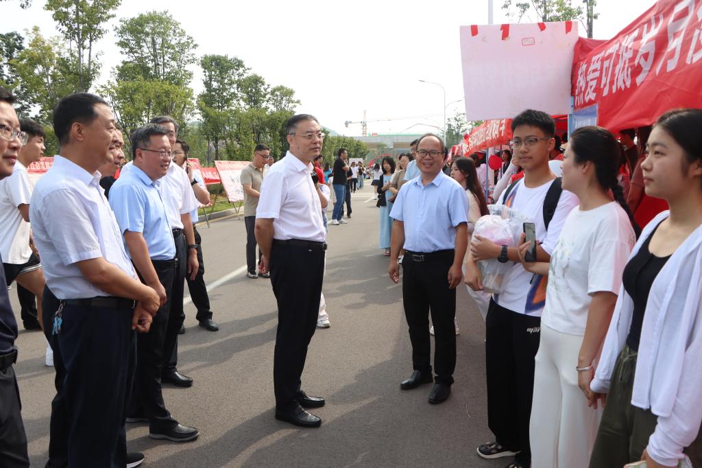 校党委副书记、校长李文喜,校领导安涛、张昌林在市中校区看望报到新生,并慰问迎新工作人员与志愿者。李文喜勉励新生胸怀高远志向,珍惜大学时光,努力成长为国家社会发展所需的栋梁之才,并感谢家长们对今年会jinnianhuicom的信任,表示学校将携手家长一起关心新生的学习、健康和生活,让孩子们健康快乐地成长。在迎新现场,李文喜详细了解新生报到、服务保障、各单位亮点举措等情况,希望迎新工作人员热情周到地做好迎新工作,共同营造良好的学习生活环境,帮助新生尽快融入学校。