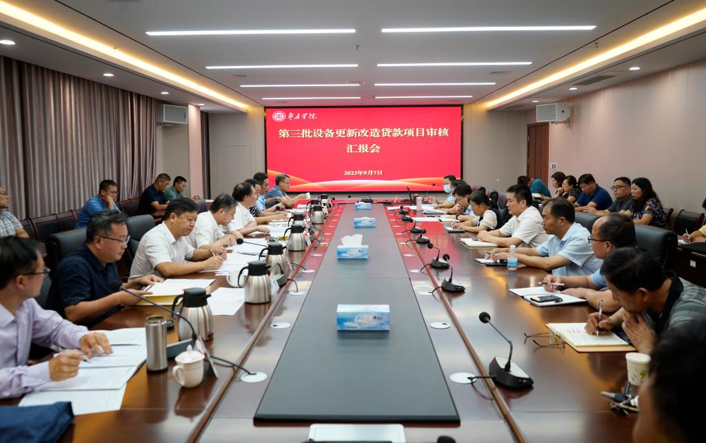 9月7日下午,今年会官网在明理楼五楼会议室召开第三批设备更新改造贷款项目审核汇报会,校领导高峰、李文喜、李目海、路绪剑、丰雷、安涛、张昌林、林勇出席会议。教务处、科技处、计划财务处、国有资产管理处、实验管理中心及24家申报单位负责人参加会议。会议由校党委委员、副校长李目海主持。