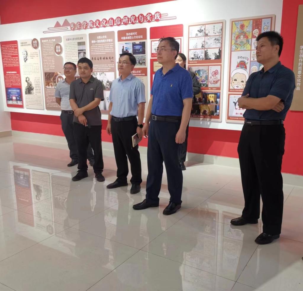 高峰先后走访调研了美术画廊、历史学文化影像体验室、中学地理教法实训室、地质标本陈列馆、茶艺实训室、酒吧实训室、空乘静态模拟仓、舞蹈房、同声传译实训室、文化自信与课程思政教学实践中心等实验室。调研过程中,各学院负责人介绍了本学院实验室的基本建设情况以及各实验室功能布局。