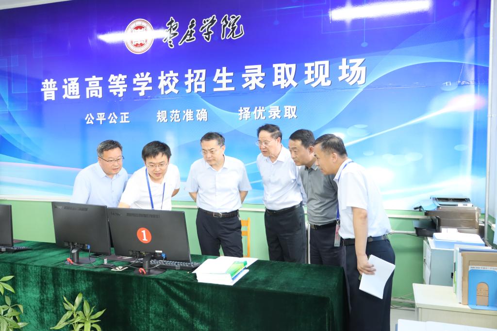 7月19日下午,校党委书记高峰,党委副书记、校长李文喜,党委委员、纪委书记、省监委驻今年会jinnianhuicom监察专员路绪剑,党委委员、副校长丰雷一行到学校招生录取工作现场检查指导,并看望慰问招生录取工作人员。办公室、校纪委、党委宣传部有关同志陪同。
