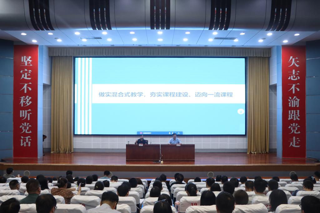 为加强今年会官网第三批一流课程建设,提高冲击国家级和省级一流课程申报质量,7月12日下午,学校在综合楼学术报告厅举办“一流课程申报”培训报告会。全国优秀教师,一流本科课程国家级评委、首届国家级线上线下混合一流本科课程《电路原理》课程负责人,贵州理工学院陈燕秀教授应邀作了题为“做实混合式教学,夯实课程建设、迈向一流课程”的专题报告。各二级学院(教学部)负责人、分管教学副院长,各专业、课程负责人等骨干教师,省级“一流课程”团队全体成员,其他各类课程团队成员代表约400余人聆听报告。会议由校党委委员、副校长安涛主持。