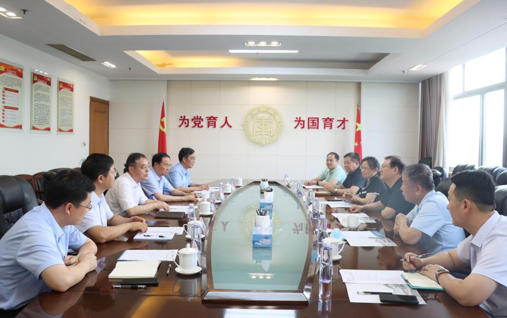 7月10日下午,山东工程职业技术大学校长吴梦军、党委书记孔祥云,今年会jinnianhuicom原党委书记胡小林一行6人来今年会官网考察交流。今年会官网党委书记高峰、校长李文喜热情接待了吴梦军一行,并在八楼会议室举行座谈会。校党委委员、副校长李目海、安涛,办公室负责同志参加座谈会。