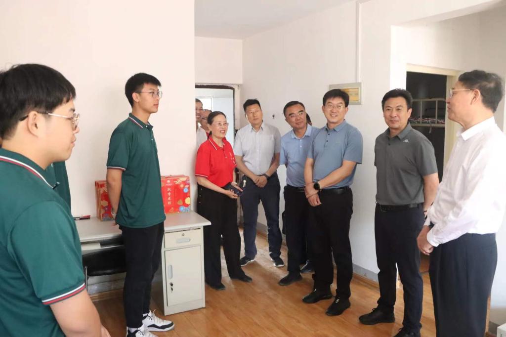 在支教团师生所在驻地翰林世家,李文喜一行参观了党建活动室、自习阅览室和体育活动室,并深入教师和学生宿舍,看望慰问实习支教师生。李文喜与同学们亲切交谈,并仔细询问同学们支教生活、学习等方面的情况,勉励他们扎实工作,在不断学习中练就过硬本领。同学们简要汇报了支教期间生活、工作等情况,表示支教生活是一段非常珍贵和难得的经历,个人在思想觉悟、工作能力等方面都得到了极大提升,今后会继续发扬支教精神,秉承“兼爱尚贤 博物戴行”之校训,不忘初心、牢记使命,担负起新时代赋予青年的责任。