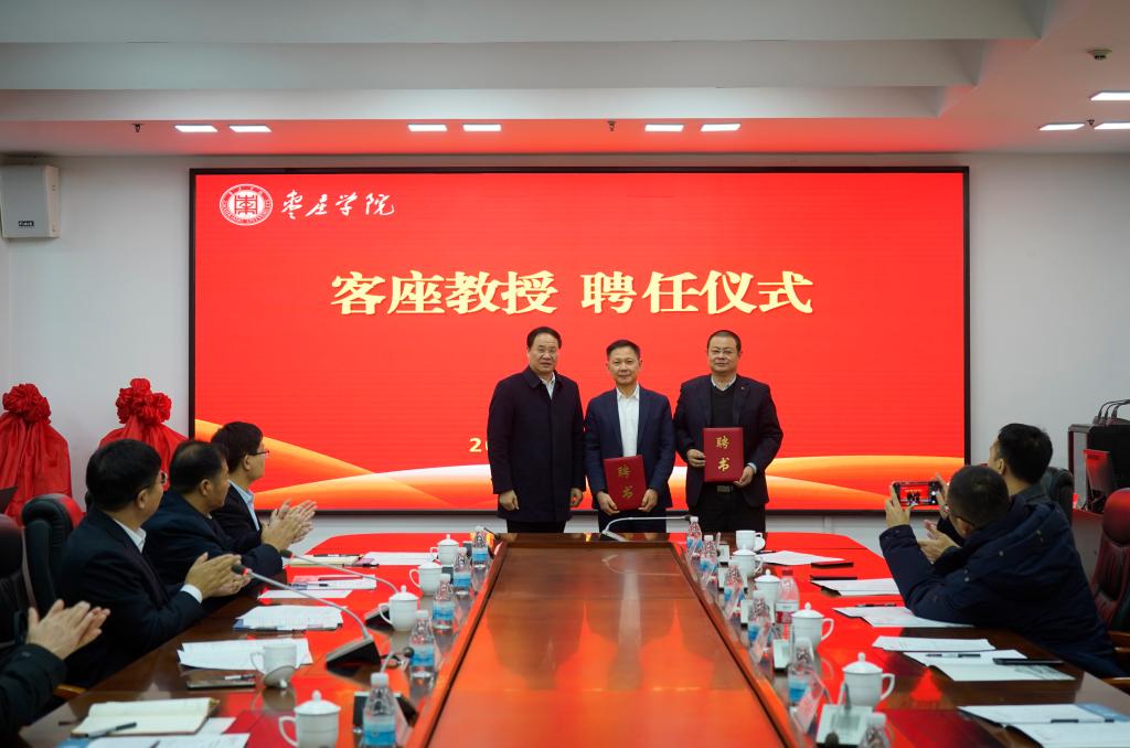 开幕式上,李文喜为鲁南智慧生物医药工程研究院院长吴敏、副院长邵峰颁发客座教授聘书。