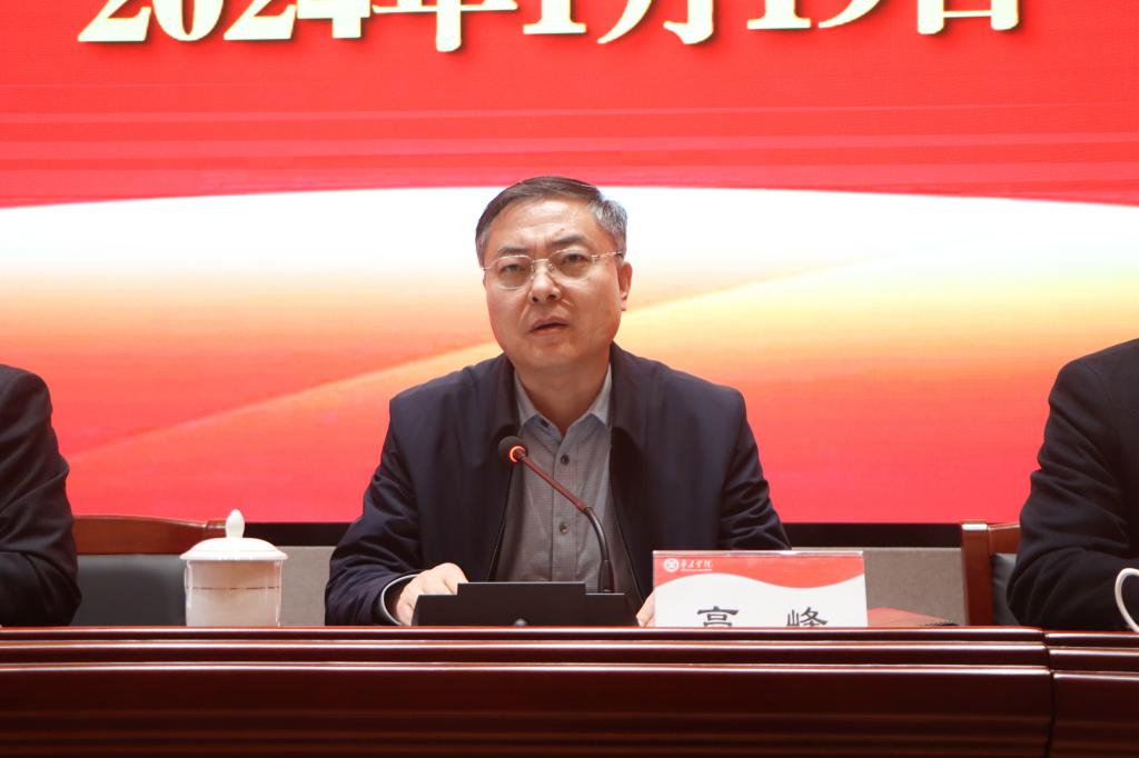 校党委书记高峰作动员讲话。他指出,新一轮审核评估是教育部在教育强国战略背景下启动实施的,是对“十四五”新发展阶段我国普通高等学校本科教育教学工作的全面把脉诊断,也是深化新时代教育评价、教育督导改革的重大举措,全校上下要统一思想、形成合力,全力以赴做好新一轮审核评估准备工作。