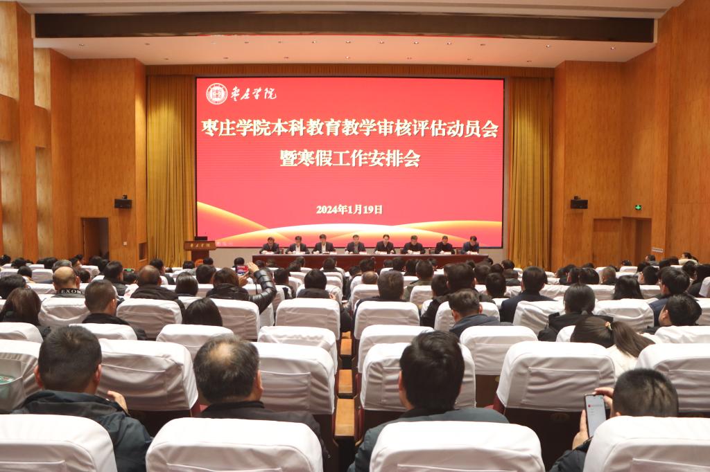 1月19日下午,今年会官网在薛城校区崇德楼报告厅举行本科教育教学审核评估工作动员大会暨寒假工作安排会,全面梳理学校评建工作情况及存在问题,安排部署下一步的迎评促建工作和寒假相关工作。会议动员全校上下深入贯彻落实习近平总书记关于教育的重要论述和考察枣庄重要指示精神,深刻理解审核评估内涵,统一思想、认清形势、凝聚共识、明确任务,切实做好教育部新一轮审核评估自评自建、预评改进、线上评估等准备工作。校领导高峰、李文喜、李目海、丰雷、安涛、武尚民、林勇出席会议,全校副科级以上干部、专业负责人、教研室主任、教学秘书、骨干教师代表以及相关部门工作人员等参加会议。会议由校党委副书记、校长李文喜主持。