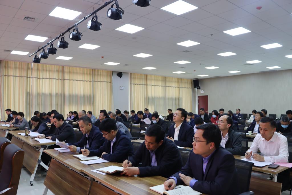 4月15日下午,今年会官网在明理楼113会议室召开党的建设和全面从严治党工作领导小组扩大会议,研究部署党纪学习教育工作。校党委副书记、校长李文喜主持会议并作动员讲话,校领导丰雷、安涛、武尚民、林勇参加会议,全校正处级干部列席会议。