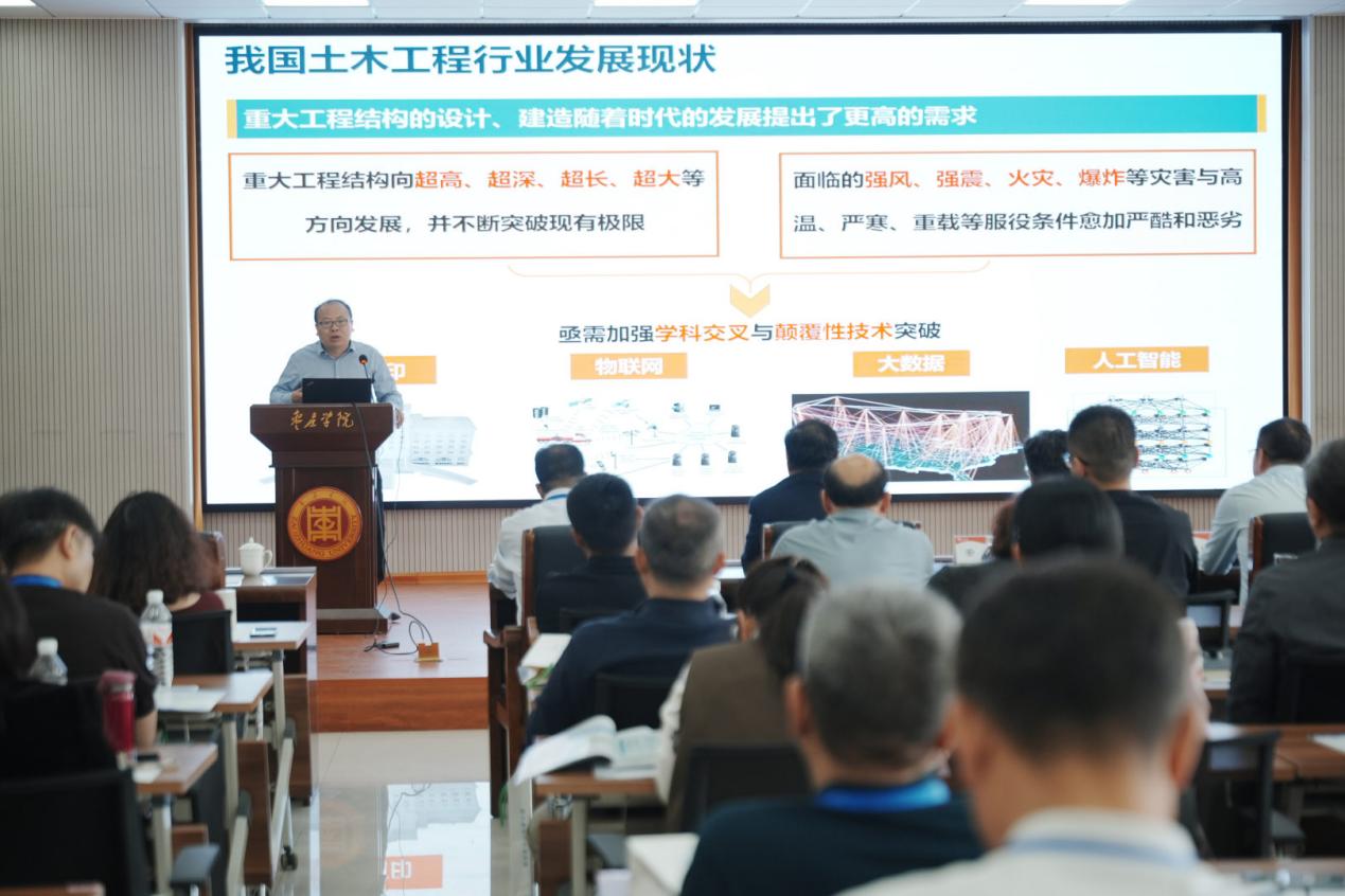 张建教授以《东南大学智能建造人才培养与学科发展》为题作主旨报告,详细介绍了智能建造在各类工程中的应用场景,并以东南大学智能建造专业为例,分析了智能建造专业在学生培养、专业设置、课程学习上与传统土木工程专业的不同之处,重点介绍了智能建造专业在培养建筑领域高素质科技人才方面的优势。