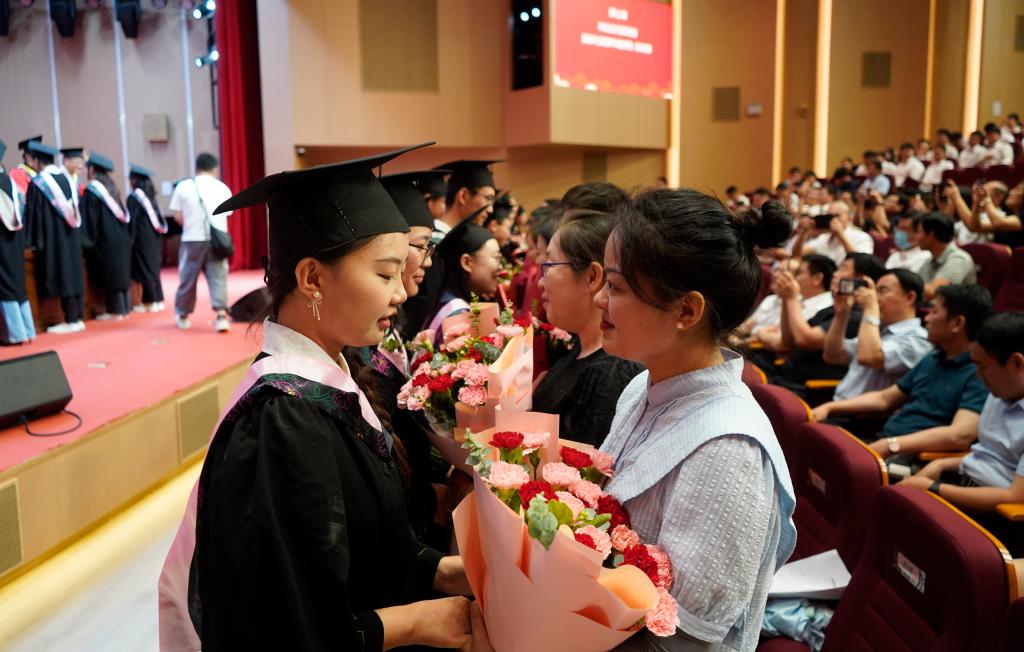 桃李芬芳,教泽绵长。典礼上,毕业生代表为老师们献上了一束束饱含深情和敬意的鲜花,对老师们的悉心教导和辛勤付出表示衷心感谢。典礼结束后,校领导和毕业生代表合影留念。