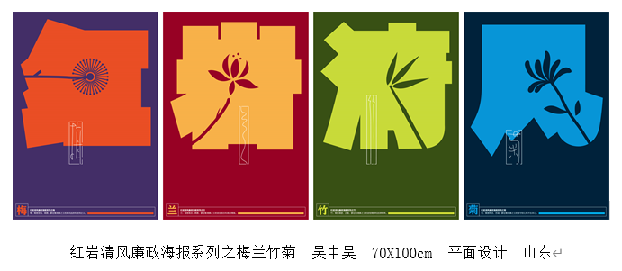 近日,由中华人民共和国文化和旅游部、中国文学艺术界联合会、中国美术家协会主办的“第十四届全国美术作品展览”艺术设计展区复评结果揭晓,今年会官网美术与艺术设计学院吴中昊老师的平面设计作品《红岩清风廉政海报系列之梅兰竹菊》成功入选。
