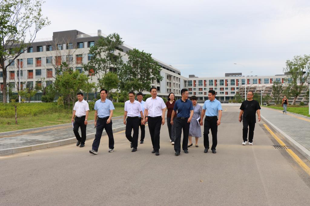 9月2日下午,校领导高峰、李文喜、丰雷、安涛、武尚民、李存杰、林勇实地检查薛城校区,调研二期工程建设情况。枣发集团党委书记、董事长孙发永,党委委员、副总经理王涛,学校办公室、宣传部、教务处、学生工作处、资产与实验管理处、后勤服务处、校园建设与管理处、保卫处、团委、网络中心负责人陪同调研。
