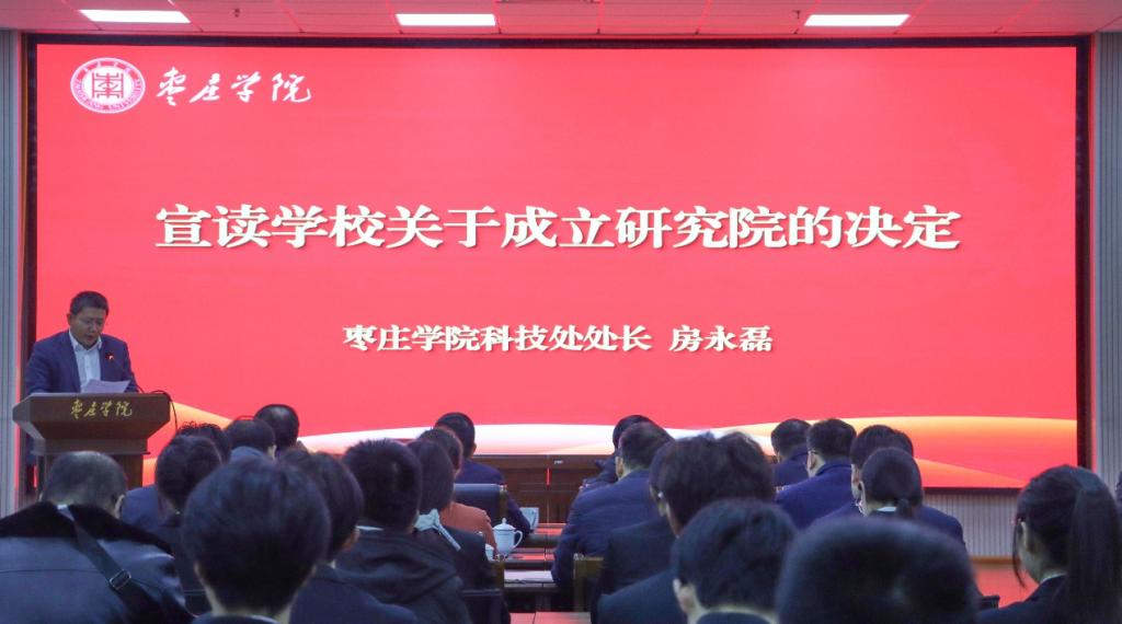 今年会jinnianhuicom科技处处长房永磊宣读学校关于成立研究院的决定。