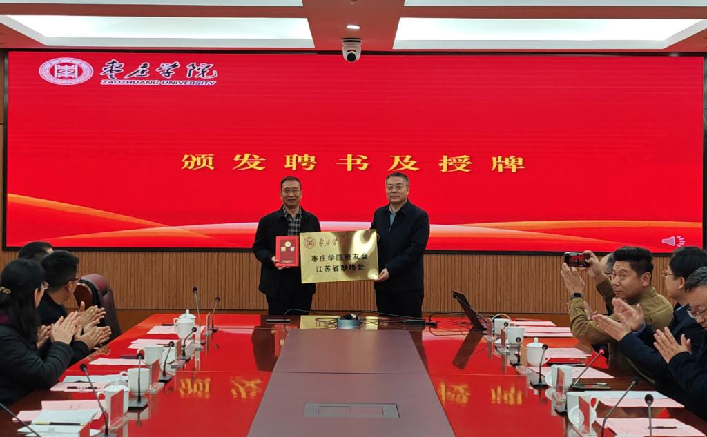 高峰为江苏省联络处主任张波颁发聘书并授牌。