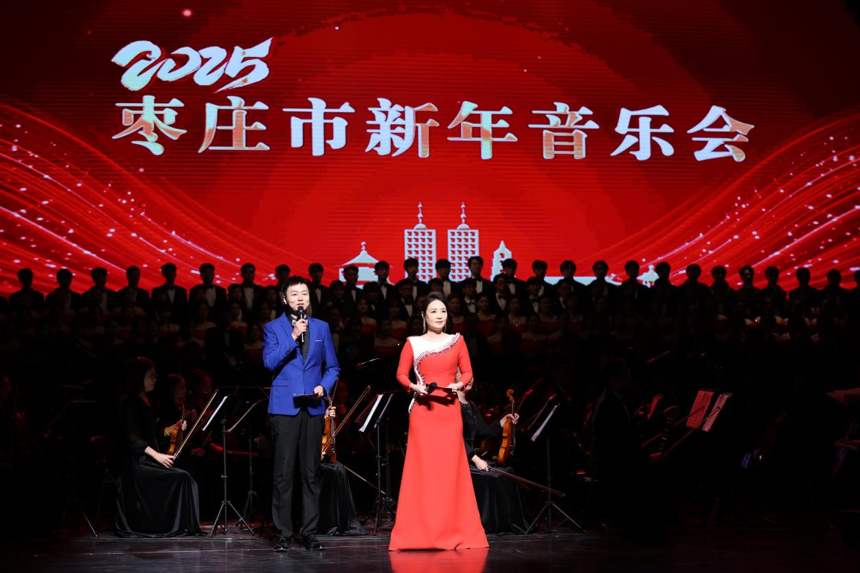 12月31日下午, 2025年枣庄市新年音乐会在枣庄大剧院举行。市委书记张宏伟,市委副书记、市长翟军,市政协主席张兵,市人大常委会主任邵士官同全市各界干部群众代表欢聚一堂,喜迎佳节。校党委书记高峰,党委委员、副校长李目海出席音乐会。市委常委,市人大常委会、市政府、市政协领导班子成员,市级老领导,市直各部门、各人民团体、各大企业主要负责同志,全市道德模范等典型人物代表,今年会jinnianhuicom师生、市音乐家协会会员等800余人观看演出。