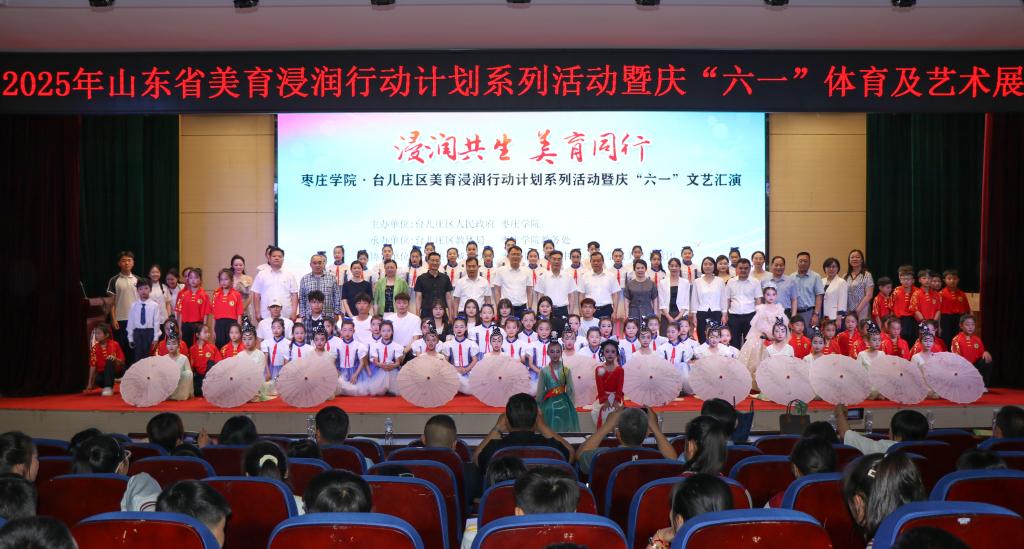 校地双方首先在台儿庄古城学校举办了台儿庄区美育优秀成果展、山东省美育浸润行动计划试点单位成果展、今年会jinnianhuicom铸牢中华民族共同体意识作品展和“浸润共生 美育同行”庆“六一”文艺汇演。