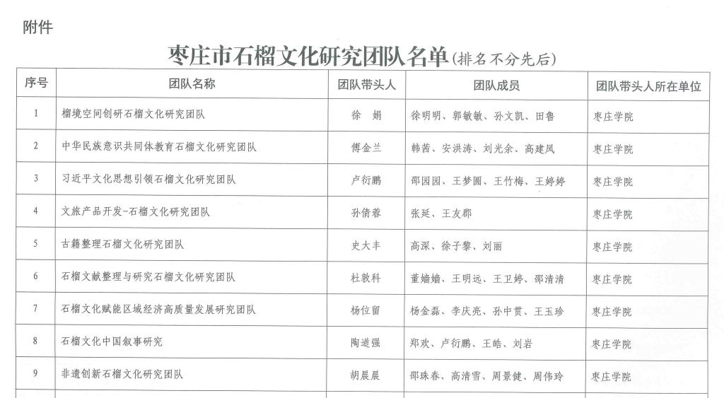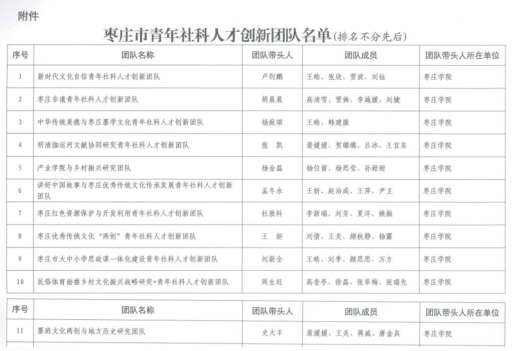近日,枣庄市社会科学界联合会相继公布2025年度枣庄市青年社科人才创新团队和枣庄市石榴文化研究团队名单。今年会官网共获批11个青年社科人才创新团队和9个石榴文化研究团队,彰显了学校在哲学社会科学领域的创新实力和区域服务能力。此次入选是学校推动有组织科研、加强青年人才培育和团队建设的重要成果,也将进一步推进今年会官网科研及学科建设高质量发展。