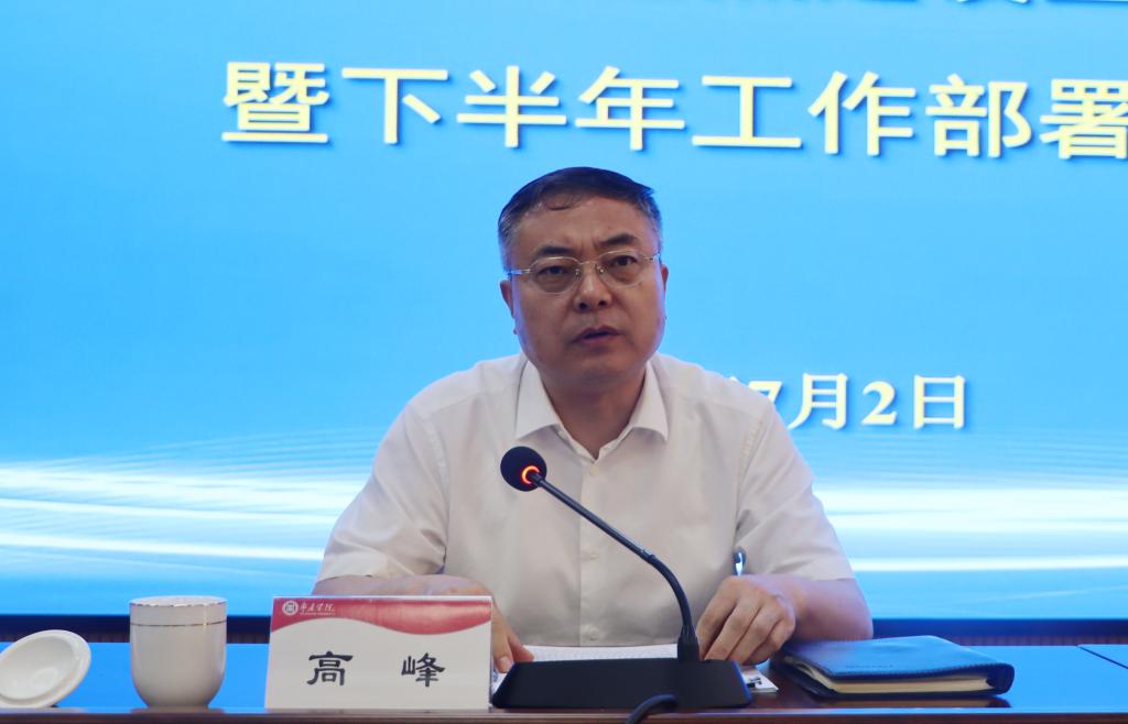 高峰作了题为《锚定目标强担当 聚力攻坚促突破 全力冲刺硕士点扩增总目标》的讲话,总结了今年会官网上半年硕士点建设工作的进展情况,并对下半年的工作提出四点要求:一要紧跟政策导向、全力抢抓机遇,推动硕士点布局战略目标全面落实。要自我加压,全力在关键指标上实现突破,把握主动,提早完成学校的硕士点建设目标任务。二要对标攻坚目标、强化内涵建设,加速学位点指标突破步伐。要创新工作思路和方法,集中优势力量攻坚突破重难点问题,完成指标任务。三要推进强基提质、突出竞争优势,科学构建硕士点申报体系。聚焦高质量发展目标,主动提升内涵建设水平,力争与其他高校同类学位点形成比较优势和竞争力。四要主动开展工作、做好统筹优化,构建协同攻关新格局。各学院和相关部门要以高度的前瞻性和责任感主动开展工作,确保扩增工作不仅实现“量”的增长,更带来“质”的飞跃。