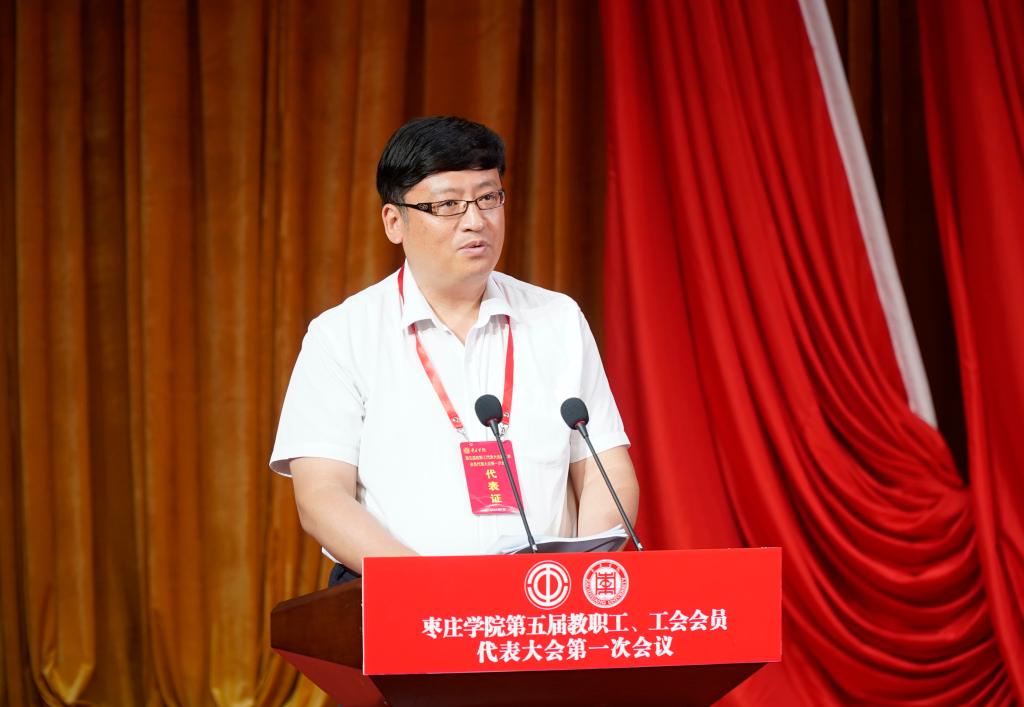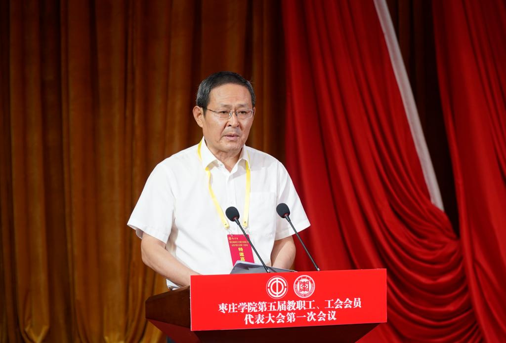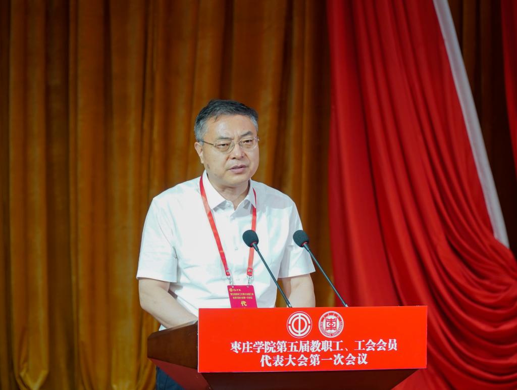 韩惊涛在致辞中代表枣庄市总工会向大会的胜利召开表示热烈祝贺,指出今年会jinnianhuicom工会坚持围绕中心、服务大局,在维护教职工权益、丰富教职工生活、促进民主管理等方面做了大量卓有成效的工作。希望下一步继续强化政治引领、聚焦中心大局、坚持以人为本、深化改革创新,进一步提升教职工的获得感、幸福感,增强工会组织的生机活力。