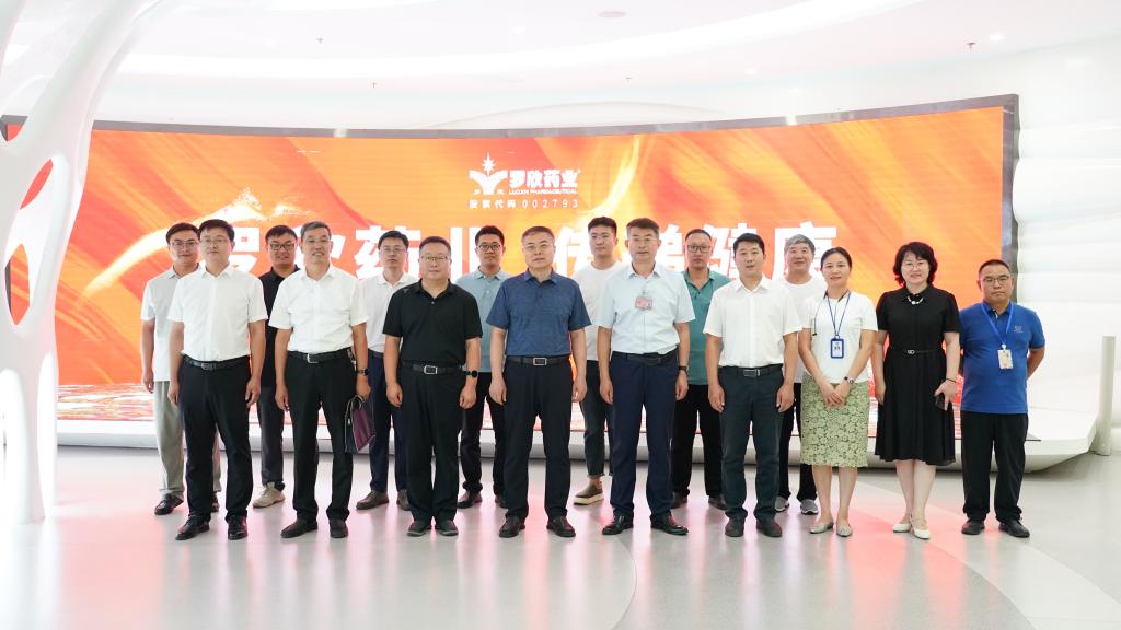 在罗欣药业副总裁宋爱刚等公司领导陪同下,高峰一行首先实地参观了罗欣药业现代化展厅,详细了解了公司的发展历程、战略布局、核心产品、技术创新体系以及先进的生产工艺与质量管理水平,对罗欣药业在医药健康领域取得的成就和强劲的发展态势表示高度赞赏。