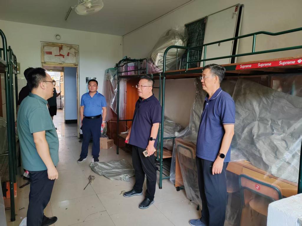 为进一步提升学生住宿环境质量,保障新学期学生顺利入住,7月20日,校党委副书记丰雷,党委委员、组织部部长袁俊现深入市中校区学生公寓,实地检查暑期基础设施维修改造工作进展情况。市中校区新建学生公寓及基础设施提升项目工作专班组长、党委委员、副校长李存杰,副组长、党委委员、统战部部长林勇陪同检查。