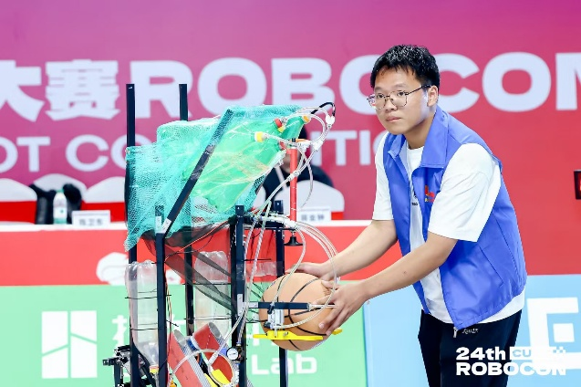 本届大赛以“飞身上篮”为主题,参赛队机器人通过投篮、运(传)球、盖帽、拦截传球等精准的机械操控和创新的战术设计,为观众呈现了一场场精彩的机器人篮球竞技赛。来自西安交通大学、哈尔滨工业大学、北京航空航天大学、北京理工大学、同济大学、华中科技大学等100余所高校的181支队伍、3500余人参赛。中国科学院沈阳自动化研究所、中国信通院、中国工程院二局等10余家国内顶尖科研院所,大疆、字节、拓竹、库犸等国内多家头部高科技企业观摩指导。