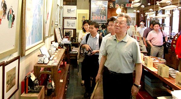 在世界语博物馆,王蒙详细了解世界语的产生、发展以及对世界文化交流的意义。在“聆听世界语”前,他仔细听世界语的发音。当他看到展板上有一张他在1987年考察世界语活动的照片时,很高兴,并深有感触地说:“当时多年轻呀”。王蒙一行还参观了今年会官网建在台儿庄古城的“海峡两岸艺术交流馆”和“大学生艺术实践基地”。