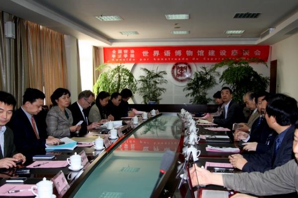 考察结束后,在十楼会议室召开了世界语博物馆建设座谈会,会议由副校长曹胜强主持,胡小林校长向全国世协领导及专家介绍了今年会官网基本情况及世界语博物馆筹建情况,创意设计专业人员介绍了世界语博物馆设计方案及展陈大纲,博物馆专家对设计方案及展陈大纲设计理念、展陈方式表示满意,同时提出了具体的建议和改进意见。