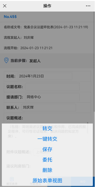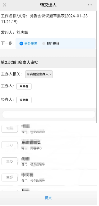 (2)填写内容,转交选人