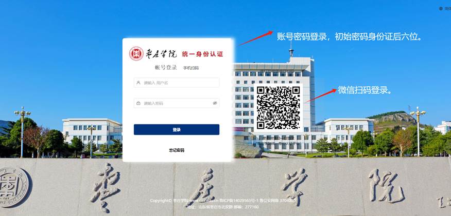 ①账号密码登录,初始密码是身份证后六位;