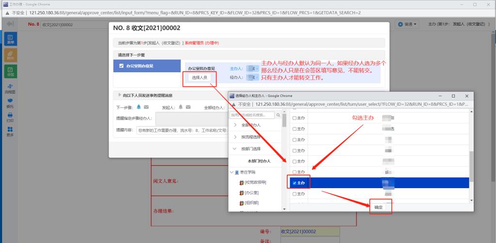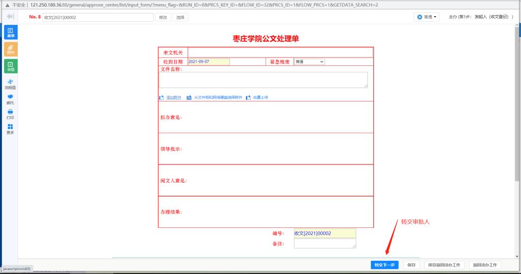 (3)点击确定,当前工作即已转交下一步审批。