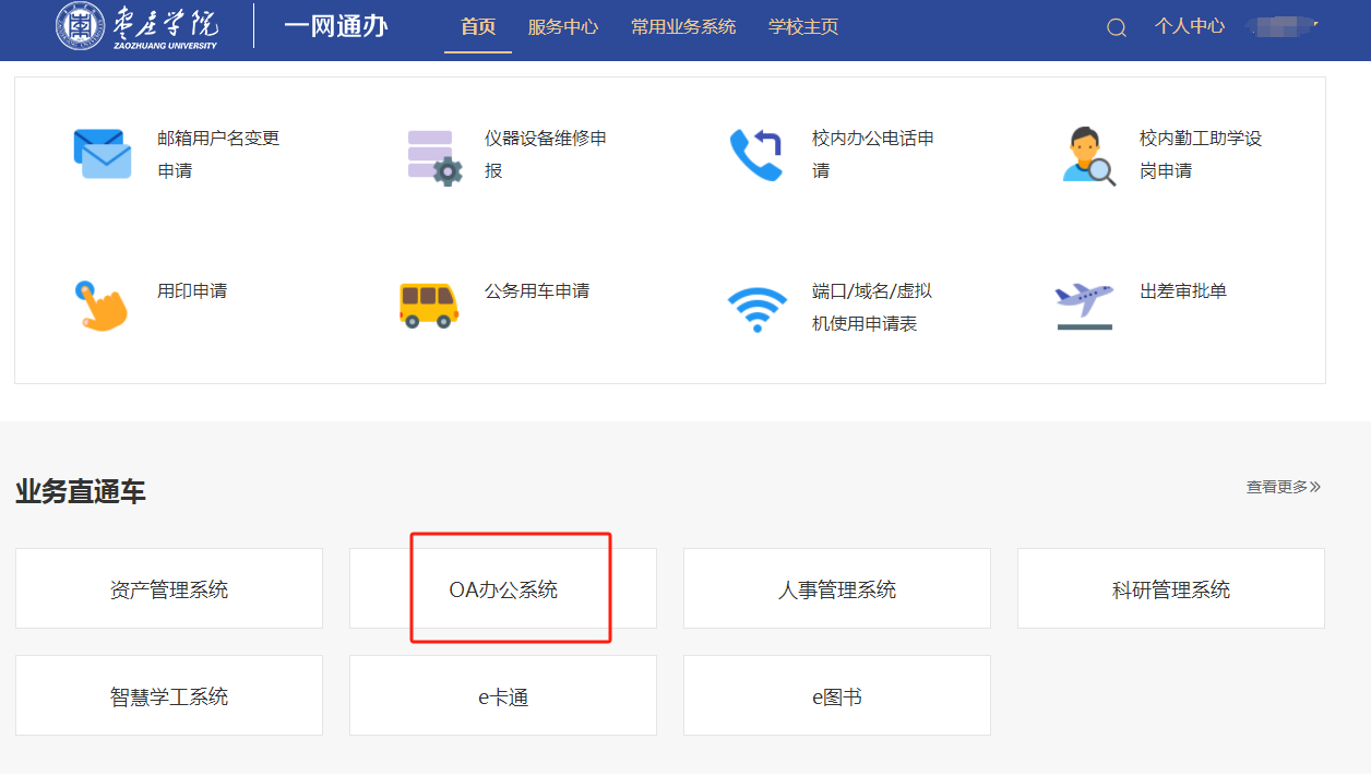 登录后选择OA即可进入。