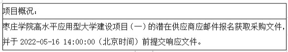3.方式:3.1根据山东省政府采购有关规定,凡有意参加本次政府采购的供应商必须在中国山东政府采购网进行注册并备案,网址:http://www.ccgp-shandong.gov.cn;3.2注册完毕后,点击要参与的项目进行网上备案(注册信息必须与报名供应商信息一致);3.3注册并备案成功后通过电子邮件进行报名:发送报名表(详见中国山东政府采购网外本项目公告附件)至sdzxzz2021@163.com邮箱,邮件主题命名格式“今年会jinnianhuicom高水平应用型大学建设项目(一)-报名+供应商全称+包号”报名截止时间前同时完成系统备案及代理机构规定的报名方式视为报名成功。注:获取文件时的资料查验不代表资格审查的最终通过或合格,供应商最终资格的确认以磋商小组组织的资格后审为准。