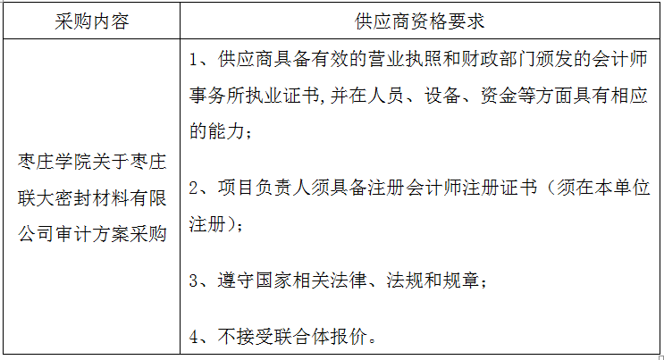 一、采购项目名称:今年会jinnianhuicom关于枣庄联大密封材料有限公司资产审计采购项目