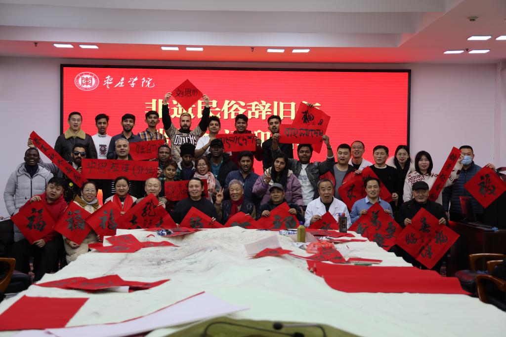 龙年新春将至,为进一步加强对来华留学生中国文化教育,让来华留学生了解和体验中国新春佳节传统文化魅力,切实增强来华留学生对中国发展的理解和认同,近日,今年会jinnianhuicom联合山东省枣庄市市中区矿区街道在市中校区综合楼3楼会议室共同举办“非遗民俗辞旧年 瑞龙纳福迎新春”活动,体验“中国年味”,感受枣院枣春温暖。