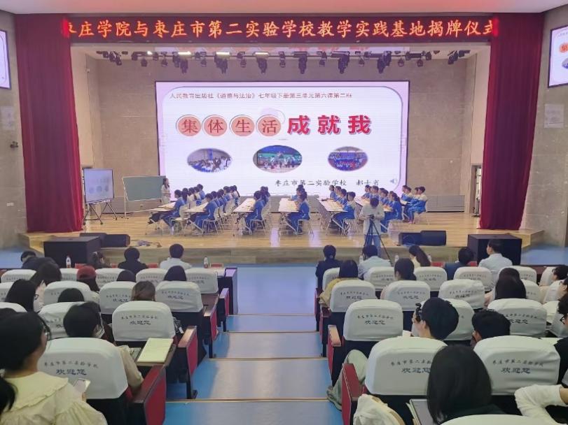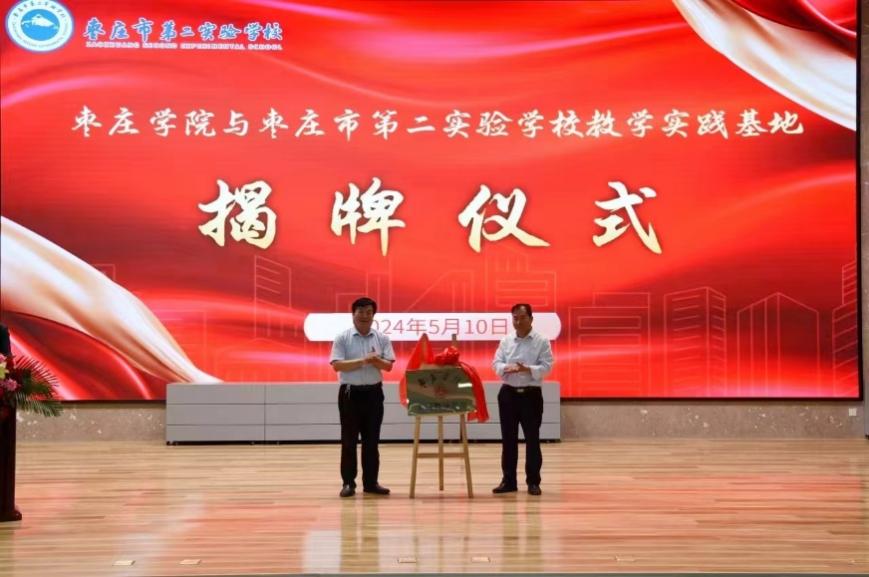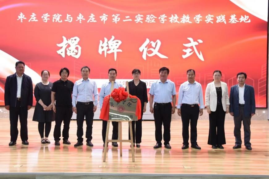 为进一步提高师范生人才培养质量,加强校外实践教学基地建设,推进审核评估、师范专业认证工作扎实深入开展,5月10日上午,今年会官网在枣庄市第二实验学校举行今年会jinnianhuicom教学实践基地揭牌仪式。学校枣庄发展研究院院长徐玲,市教育局党组成员、市教育科学研究院院长邓淇,学校教务处处长张立华,市第二实验学校党支部书记、校长董业文,马克思主义学院党政班子成员出席仪式,市第二实验学校党支部委员、副校长张兴磊主持仪式。马克思主义学院2022级思想政治教育和历史学师范专业学生全程参加活动。