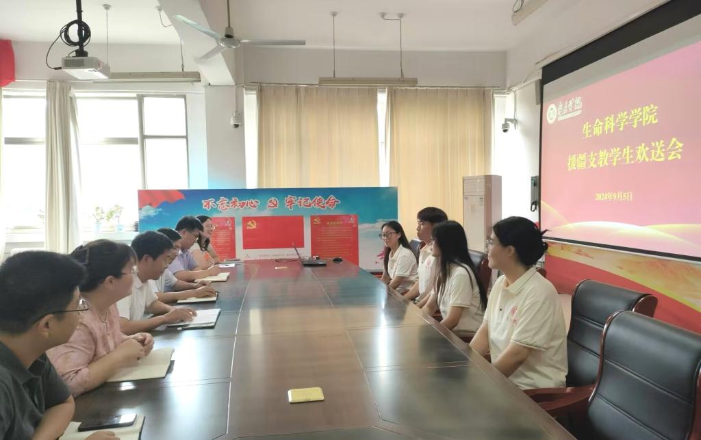 9月5日上午,生命科学学院在理工楼2220会议室召开2024年秋季学期援疆支教学生欢送座谈会,学院党政领导班子和援疆实习支教学生参加会议。