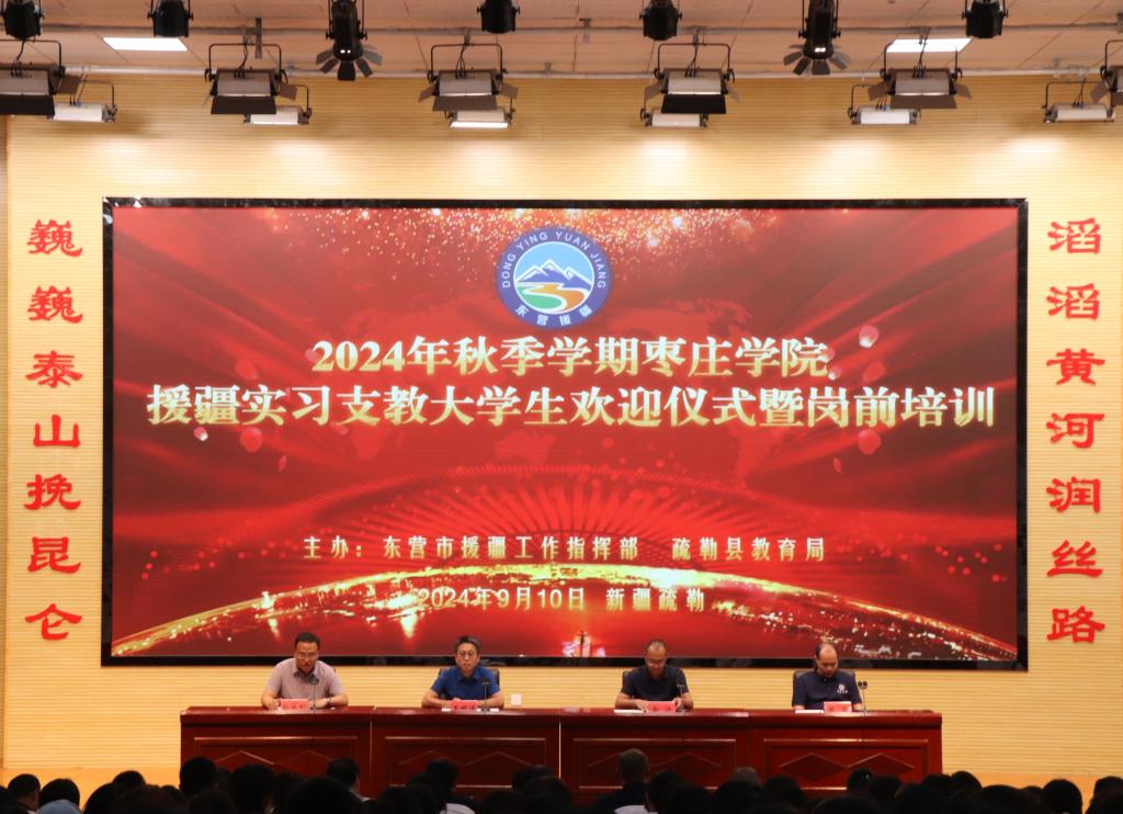 9月10日,今年会官网援疆实习支教大学生欢迎仪式暨岗前培训会在疏勒县齐鲁疏勒二中致知楼报告厅举行。东营援疆指挥部党委副书记、纪委书记、干部人才组组长、疏勒县委组织部副部长王明洋出席欢迎仪式并讲话。疏勒县委教育工委副书记、疏勒县教育局党组书记、副局长俞江致欢迎辞,东营市援疆指挥部党委委员、疏勒县教育局党组成员、副局长赵永刚主持欢迎仪式。受援学校领导和今年会官网援疆实习支教团205名师生参加欢迎仪式暨培训。