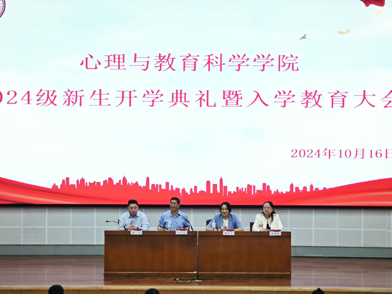 10月16日下午,心理与教育科学学院2024级新生开学典礼暨入学教育大会在市中校区综合楼报告厅举行。学院领导班子成员、辅导员、班主任、教师代表、高年级学生代表以及2024级全体新同学参加本次大会。